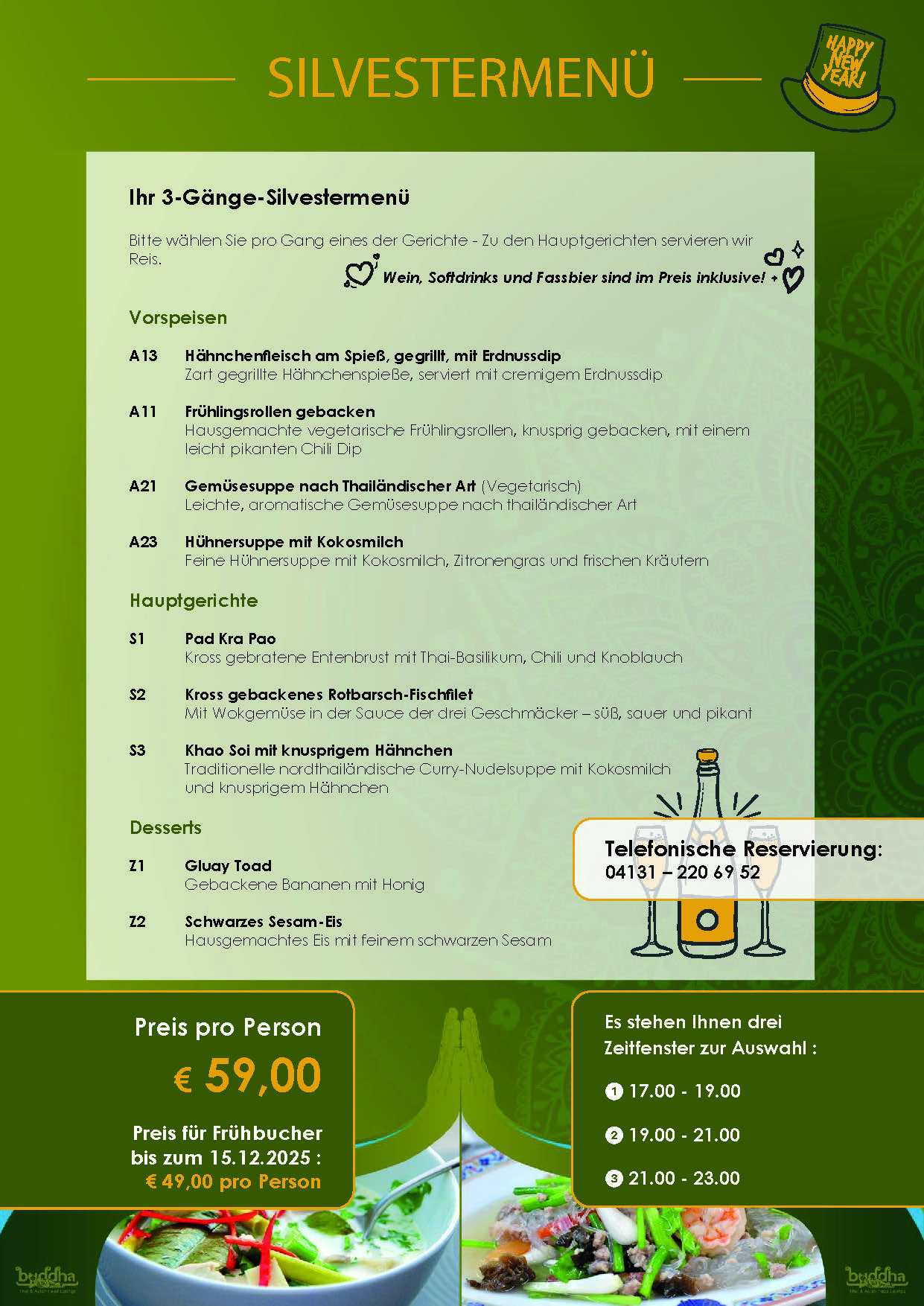 Bitte reservieren Sie telefonisch : 04131 - 220 69 52